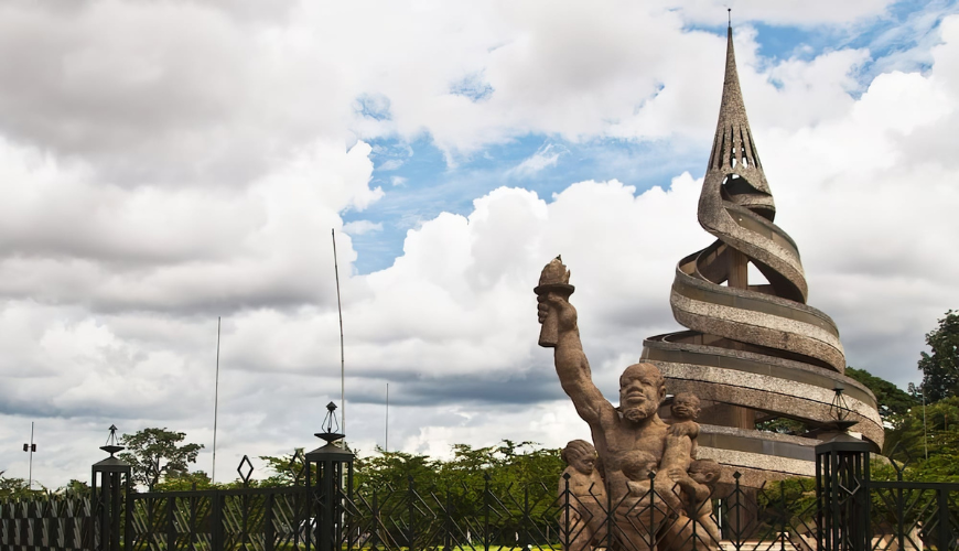 The Reunification Monument, also known as the Reunification Monument in English, is an iconic symbol located in Yaoundé, the capital of Cameroon. Erected in the early 1970s, this monument was built to celebrate a major historical event: the post-colonial reunification of French Cameroon with part of British Cameroon. This reunification, which took place in 1961, marked a decisive turning point in the history of Cameroon, putting an end to the division inherited from the colonial era. The Reunification Monument is therefore a symbol of national unity and the cultural diversity of the country. Situated in a picturesque setting in Yaoundé, the monument is an important gathering place for locals and visitors, offering magnificent views of the city and recalling the importance of history and collective memory in the construction of the national identity.